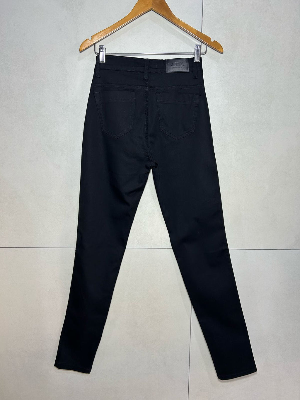 - Características: Calça feminina brim reta , com bolsos frontais e traseiros e cós com passantes.
